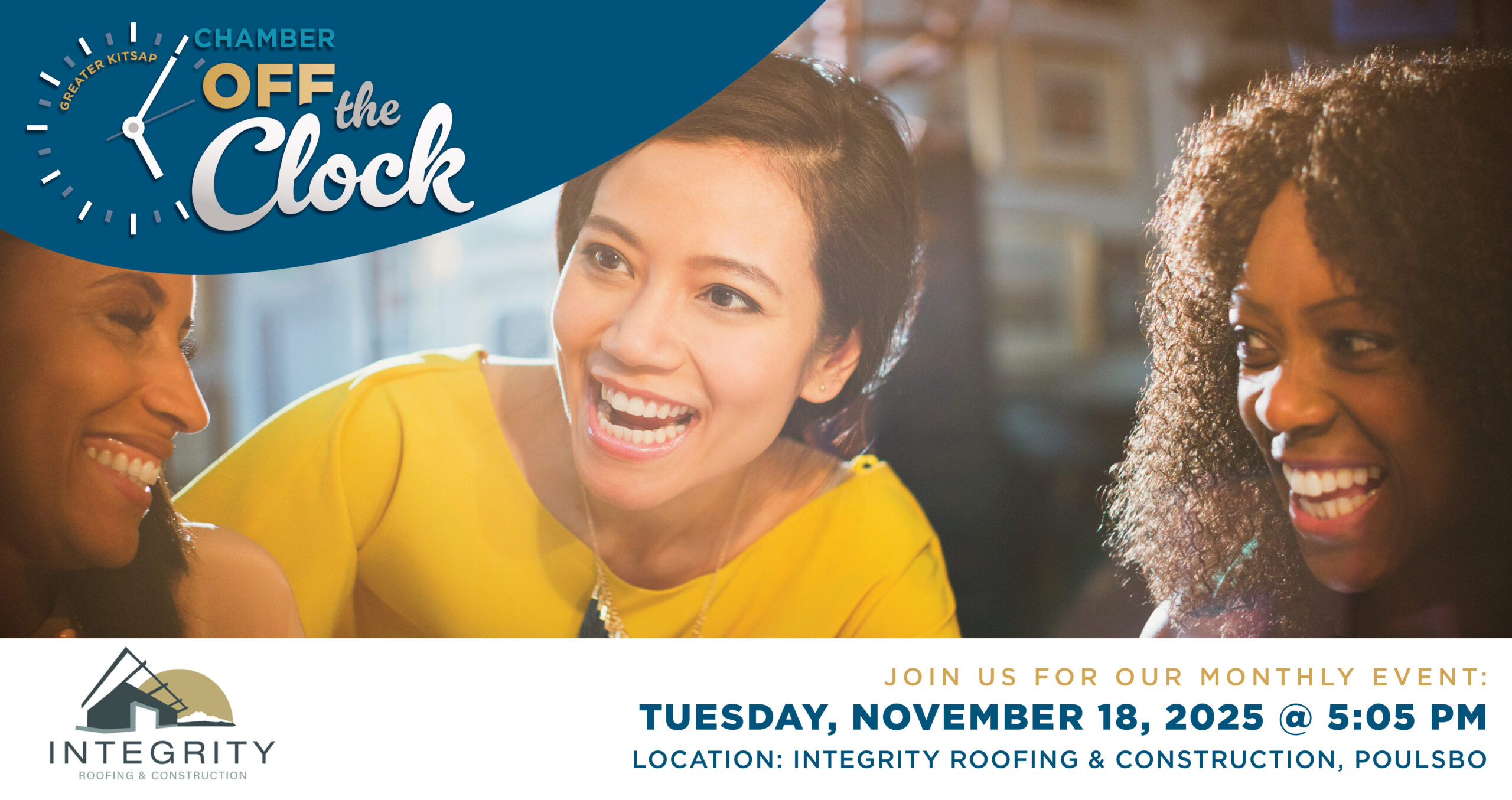 Join the Greater Kitsap Chamber at our November after-hours event hosted by Integrity Roofing and Construction. This is a great opportunity to connect with fellow professionals, exchange ideas, and build new relationships in a relaxed, welcoming setting. Whether you're a seasoned Chamber member or new to the scene, come unwind, network, and grow your business …