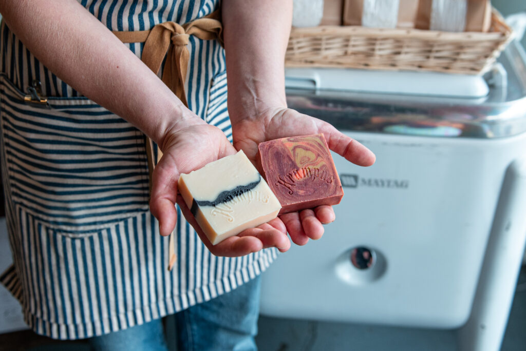 “It was founded by Laura Kneib,” Buescher said. “The story she always told me was she was out to eat, I believe, at Hound and Bottle in Manette, and she saw someone walk past with a vat of fryer oil. Like, to dump or something. And she wondered, ‘Oh, I wonder if I could make soap with that’.”