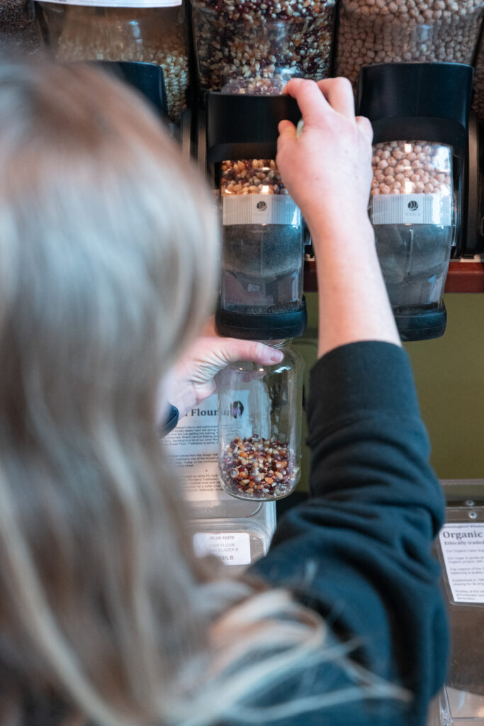 Even product sourcing reflects sustainability values. The store carries milk in returnable glass bottles from Twinbrook Creamery and bulk goods from Hummingbird Wholesale, a distributor known for ethical sourcing practices.